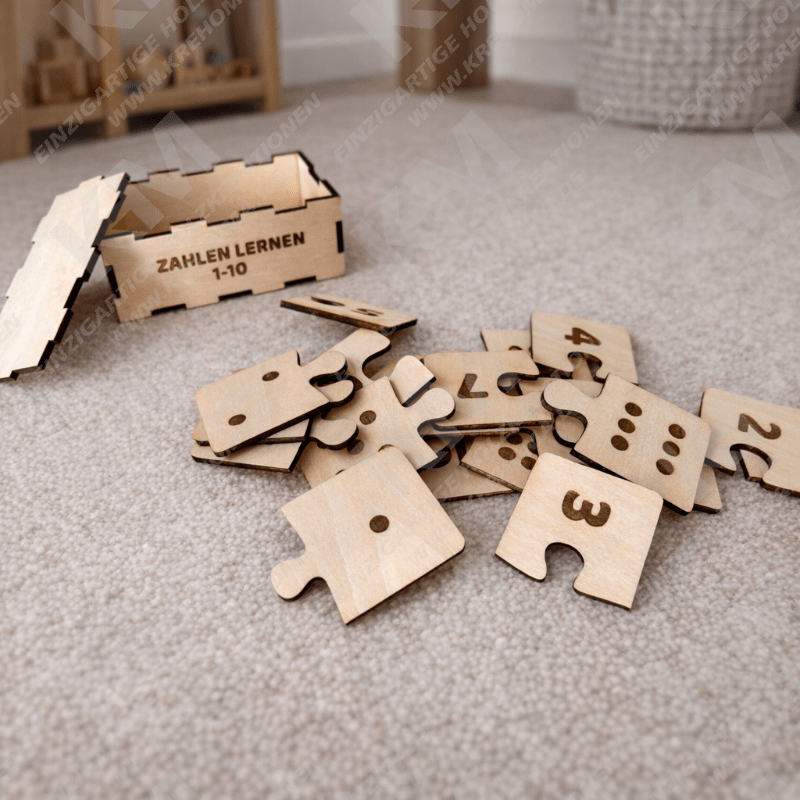 Mit diesem liebevoll gestalteten Montessori‑Zahlenpuzzle aus Holz können Kinder spielerisch die Welt der Zahlen entdecken. Die stabilen Holzzahlen 1–10 sind perfekt geformt und lassen sich leicht greifen – ideal für kleine Hände. Beim Herausnehmen und Einsetzen in das Puzzlebrett üben Kinder nicht nur das Zählen, sondern verbessern gleichzeitig ihre Feinmotorik, Konzentration und ihr Zahlenverständnis. Durch das Begreifen und Zuordnen wird mathematisches Lernen zu einem handgreiflichen Erlebnis. Dieses Holzpuzzle eignet sich hervorragend für Zuhause, den Kindergarten oder als pädagogisches Geschenk zum Schulstart oder Geburtstag.