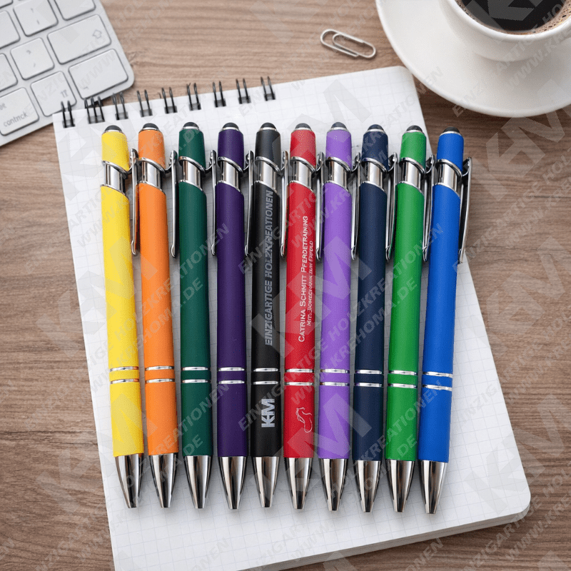 Personalisierter Gummierter Stylus Kugelschreiber mit Gravur